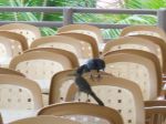 We were at a outside buffet on a beach in Cozumel and these birds that look like an american grackle would come and eat off the tables next to us. The male was banded. These birds were I bet 18 inches in length from beak to tip of tail. I tried to catch the male and twist his head off and get the band. Too many Dos XX's I guess. The owner of the buffet ask me to leave...