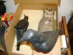 The earliest crow decoys were made out of balsa wood and paper mache' back in the early 1940's. Plastic did not come on the scene until the early 1960's. Some of the old crow decoy makers were General Fiber, Victor and Carry - Lite. These were all paper mache' crow decoys.