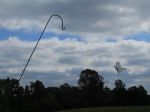 The flying deek is on a shepards hook that you hang plants on. Its one that John Boos from California sent me. I shot a pigeon that actually tried to light on it. You cant put any deeks on the ground, they have to be high enough that the cows cant reach. They are curious animals. They will lick or stomp or piss on anything that is new to the area. I plan on hitting the pigeons again soon but the lime the farmer put on the ground has changed the way they feed,,,will keep you guys posted!!!!!!!!!
