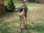 Well I must have had a lucky charm somewhere with me this weekend,I know that this is not a predator forum but I enclosed a pic of the freekin coyote that I think that stole my crowbiggrin yesterday morning, I took this 40-1/2 lb male this morning at 8:45 just about roughly 400 yards up the creek bed where I was shooting crows yesterday morning so go figure. The farmer that owns the property told me to come back anytime I please.