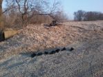 Totally changed up locations today, set-up on a creek tree line with fields on bothsides with nicely mowed waterways so the decoys were visisble only had about an hour and half to hunt managed to dump 7 dive bombers and totally wiffed a couple shots.