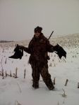 Season is over (Sept-March Fri Sat Sun Mon only) First year crow hunting... learned a lot! Winter hunts are fun. Best days were 10 and 11, but here are 4 my oldest son took. Also had this one land right next to me on a 12 o'clock low shot coming straight at me - I cold have caught it. My best story, not sure even pros can top this, winged a crow straight over head, it flew in circle left turn only, and end up flying UP to about 300 feet (on an updraft IDK), before it ran out of gas and spiraled for nearly 15 seconds to the ground. I wish I caught it on video.