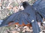Saw lots of interesting wildlife. A couple giant racoons, a mink, a coyote barked at me from a safe distance and lots of songbirds,cranes and waterfowl. Also while "bushing" some of my kill I happened upon a crow with a bit of white in its wing. Took a quick photo, sorry a cheap camera with no macro.