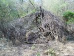 I stumbled across this cave of vines last week. It is about 10' across and 6 1/2' high to the top of the dead tree. It's in a small clearing on private property. I hollowed it out a bit and draged some more vines across the front. I just need to build up the front higher and I'll be done. It is a little tough to see the scale without a someone standing in it. This piece of land does produce a lot of birds, but they won't know what hit 'em.
