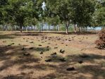 Before the pecan harvest I have to pick up all the downed crows that fall inside the orchard. That is how I noticed the piebald fish crow. Thats why I carry a rake with me, on flat ground as in an orchard with little ground cover it's much easier on the back to just rake the emptys into piles. Then I just tip my trash bucket sideways and just shove em all in!