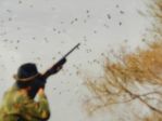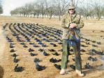 In photo # 1 you can see a full scale flyway shoot from the mid to late 1970's. Photo # 2 was shot right here in Hutchinson, Kansas back in the 1980's. Photo # 3 is a great old action photo of Jim Lundquist getting on a crow just a moment before impact. In photo # 4 there are already two dead birds in the air (the far ones) and the third is about to get it!