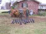 Shot with 2nd cousin today at his mom's house. She has 17 pecan trees and the crows were taking all the nuts. The location is such that the best place to set up was against the house. We picked up 68 the killed another one after the pictures and lost 9 in the woods for a total of 78. Also killed a squirrel..We should of had.... more..The first shot was fired at 6:59 a.m.. The neighbors just loved us being there..