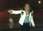 We walk back down by our van and I am trying to talk my girl into hold it. She is just screaming and freaking out big time. I drop the thing and it starts jumping at me again as my daughter runs away. I grab it again and talk her into holding it. SHE does! Then it is getting all wiggly and she says I gotta drop it and I say throw it in the snow. She tossed it about 10 feet. The little bastage comes running at her, she is screaming and runs into the van. The rat runs under our van.