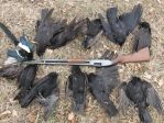 While heading home I noticed about two dozen crows feeding on a black field. Got upwing along a small cattail slough and called them over to ding a nice double. Was home before 10 AM with 13 kills under my belt.