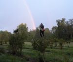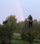 Since Bob placed some of his cool photos up a short time ago, I thought I would include one of a rainbow over my decoys (Yes, I got wet…). The hawk decoy appears to have black legs, but those are the "dead" crow's wings. Not as clear as Bob’s, but kind of nice to have a rainbow, any day, even if you do get wet.
