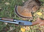 Pics below of some of the kill, my blind amoung the sunflower and a strange critter caught eating acorns and chased up a tree. Also being such a pleasant aftenoon, I decided to go for a short walk along a bush trail to enjoy the fall colours. Put up a couple ruffed grouse, busted one which was the biggest, plumpest ruffie I have ever shot. Found the modified a bit too restricting for this type of work.