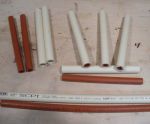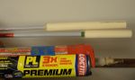 I made 8 X six foot sections yielding a possibility of about 45+ feet. Cost: $4.00 for two pieces of tubing as I had the other materials. I used PEX and CPVC tubing, along with Loctite construction adhesive to make six inch connectors. The 3/8" PEX fits almost perfectly over the snow stick and to add rigidity (PEX flexes a bit) I literally hammered, with liquid soap lubricant, the 1/2" CPVC over the PEX, making a rigid connector. I tried to find aluminum to cover the fiberglass directly, but could not. In hindsight, I think this is stronger and as the glass sticks flex so much anyway, it just doesn't matter.