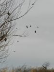 I place my deels no more than 10 yards out from my hide, infront of or in behind, depending on how the crows are reacting which is usually dependant on wind direction and intensity. It is my belief that a lot of guys set up for crows much as one would for waterfowl, with decoys at that magical 30-40 yard range. Crows unlike ducks and geese are very capable of changing flight direction on a dime. Deeks placed too far out will result in one good chance with survivors flaring back wildly making for a second "Hail Mary" shot.
