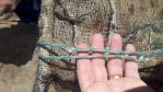 The burlap is 12 ft by 50 inches I think. Standard product at Bass Pro Shop. I used parachute cord about every ft to tie the limbs for cover. The hoops poles were 10 ft in lenght. I may add another ft to each top but they work pretty good just like they are.