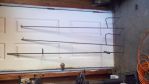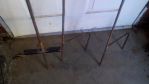 Here is what my brother and I came up with. The upper hook is for the hoop. The middle "U" is for my guns to prop against. And the bottom bar is to stand on and drive in the ground. My hoop is a 12 ft section of pipe with burlap 54" tall.