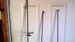 The hooks on the top of each pole to hold the hoop are high enough that it keeps the bottom of the blind just off of the ground. Keeps me from stepping on them and tearing up the blind pulling it down.
