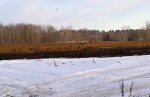 This is the photo I snapped when driving along the road. Not te greatest photo but if you look closely, you can see that most of the crows are still on the ground in the darkest part of the photo. There were hundreds of crows on the ground there. All of the brown in the photo is manure spread on top of the snow.