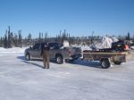 Finished with our winter caribou hunt at the tree line of northern Canada. 40 below dark zero was the word. Plauged by bitter cold resulting in constant equipment/mechanical problems. A few rifles would not even fire if you can believe that. 10 guys took 16 caribou. As the "crow flys" 537 miles north of my home. GPS coordinate of: 57.51975,-100.58244 if you care