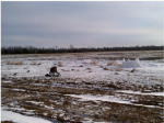 Closer view of blind. It worked well, we shot a few at about 7 or 8 yards flying straight at us and about 6 feet off the ground :) Those made the feathers fly! That's freshly spread cow manure on top of about 8" of snow. We got another foot of snow last night.