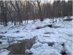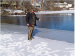 Out ice fishing a week ago. This is a friend of mine, may look dangerous, but he's standing on at least 6" of ice even though he's that close to open water.