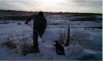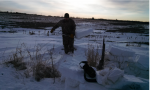 Charles setting decoys, we added more snow blocks and made the blind about 18" taller after this photo.