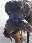#15 My young dog Annie retrieves a green-winged teal.