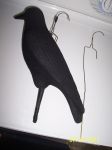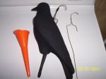 I hav had several PM's Asking about this so I thought I would repost. This is a method I learned from Marv in Iowa. In the first couple pics you can see I drilled 2 tiny holes in the back of the decoy and ran the long section of the clothes hanger down thru the spike. The other part just goes in the second hole for stability. Leave about a half inch exposed so u can bend back up around the base of the spike. Use black tape to secure. I taped a 1/4 inch piece of pvc 6 inches or so long to the end of my extendable golf ball retriever. When hanging the deek slide the spike down in the pvc. Use the funnel in the pvc to take the deek down. Just guide the funnel into the downward hanging spile and push up and she comes right off and stays in the funnel on the way down. Its fast and Awsome. I pulled my hair out hangin sentry's till I got this from Marv. A ton of crows have died using this method. I can get 30 feet out of the retriever added to my highth.