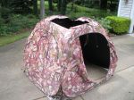 Picked up a couple more today. Another perfect morning BTW. I was situated beneath the edge of the overhang from some huge walnut and maple trees. I like it when they land about 15' away. Also, the roofless doghouse is looking better with more foliage and it withstands the weight better because I pinned the corners down. I will keep adding more to it as the days go by to see how much it will take. I think it needs a bit more. Otherwise, I think this setup works just fine.