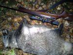 We went for badger hunting last evening with my .22 mag. The grains and apples were at a distance around 45 meter and we waited in a tower/box for many hours. Did not want to startle the animals by coming to late... I heard the crows in the distance and man i wanted to go there.. Well any ways 8:05 pm we hear 3 shots fired some miles away.. 8:20 i think i saw 2 badgers walking towards the bait but then came a deer and the badgers run away. That dam deer came and spoiled it all, then suddenly something happened and the deer got spooked took off. Then behind the deer in the woods i saw a raccoon dog looking in the same direction as the sound came. I aimed and squeezed the trigger... bam and i heard aaaah then he died. We went to search for him with flashlights it was getting dark. Without my scope it would not had been possible to take that shot, it really makes a difference... it collects light my 40 mm burris fullfield 2. There the animal was and the show went thru his left lung and near heart or in hear and thru the right lung.. he did not walk many steps before he died. The animal is quite fat so i guess hes a regular customer at this dining place. The .22 mag is a good caliber for varmint i must say. Se the picture
