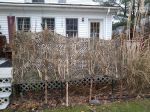No matter what blinds you use, I like camo leafy material on tall furring strips to start, but then I really try to brush in with surrounding natural materials they best I can -- the more the better. I consider my best blinds to be semi-portable and I leave them in a few of my best locations tied down with guy ropes. Pictures below - I have "pre-bushed " them in with garden grasses, but that definitely is not enough. You should look at Bob's photos of brushed-in blinds. Completely concealed!