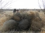 Here is a photo of Dick getting his stuff in the blind and he already has targets of opportunity. I was 100 yards away with a telephoto lens inside the pickup.