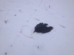 Unusual for us NC crow guys to get to engage crows over snow!This past weekend was the exception. These two crashed where you see them. . I was suprised at the blood "debris field"...that covered yards around these birds! Black and red offer sharp contrast with white. Graphic!!Again, not something we see here much!