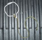 The lower portion’s construction is of fairly conventional PVC, using 1” PVC for the base, upright, and extension bows to attach the bottom net piece, using eyebolts on which to hang the nets. Then, two ½” PVC bows hinged to a stationary ½” vertical bow. The base pieces are secured to the ground as needed using from one to four 12” spikes, depending on conditions. It needs to be fairly level or one side or the other will fall more slowly—this could be remedied by a bungee-type cord.