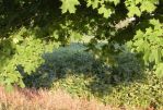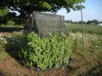One interesting find as I was tearing the setup down was that I discovered a small paper wasp nest (circle) right next to where I had placed a silhouette (in the darkness). Good thing they were sleeping then. Also saw one deer (circle--use your imagination) about 70 yards distant in the soybeans behind me. Had it been antlerless season, I would have taken the shot.