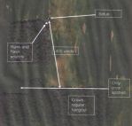 One interesting find as I was tearing the setup down was that I discovered a small paper wasp nest (circle) right next to where I had placed a silhouette (in the darkness). Good thing they were sleeping then. Also saw one deer (circle--use your imagination) about 70 yards distant in the soybeans behind me. Had it been antlerless season, I would have taken the shot.