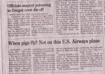 (1.) The Horror--the Horror! People should not be poisoning crows, giving them an inglorious slow death—they should be blasted from the sky as all of you would agree. Speaking of the sky, the other “flying” story (2.) is here simply because it illustrates some people aren’t as smart as potential bacon.
