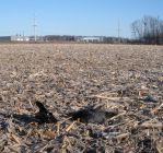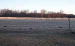 Turns out that this was to be my last outing for the FEB-MAR MI season, so I went to a couple of favorite spots to see if I could whack a couple of “townies.” A bit cool this a.m., at 9 Deg. F, but had an extra layer on so not too bad with almost zero wind. First setup was just outside the City Limits (again, behind Wal-Mart in a friend’s backyard.) where three uneducated bandits visited, with two hitting the frozen ground hard! Clearly, they had not been to the local community college--off in the distant background. Then I want to another favorite spot at a friend’s land development that has a small lake, complete with swimming beach.