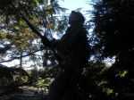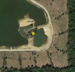 Set up this morning at a friend’s development of home sites which includes a nice man-made lake (Google Earth shot). Been here every crow season at one point or another. It’s an easy set up (yellow star), as a blind isn’t needed due to the nice clump of pines and bushes that provide pretty good cover (shameless selfie). It seems there had been a big party on Thursday and there was a lot of debris and food left around—perfect for our scavenger pals!