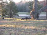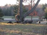 Nope, don't mean from Summer to Fall: from Fall Turkey to Gun Deer season in MI. What a difference 12 hours makes. The day before, it was turkey season--nothing seen for the last 4-5 mornings out, in historically good areas, with a few bucks and does passing through. 12 hours later, no deer seen (well, one about 100 yards away--too far for a slug), then this parade of 5 hens and 4 jakes appears. Fun to watch them eating my bait for a few minutes. Otherwise, a beautiful morning. Oh, almost forgot, there was a huge crow fight the other side of the lake, naturally.