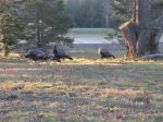 Nope, don't mean from Summer to Fall: from Fall Turkey to Gun Deer season in MI. What a difference 12 hours makes. The day before, it was turkey season--nothing seen for the last 4-5 mornings out, in historically good areas, with a few bucks and does passing through. 12 hours later, no deer seen (well, one about 100 yards away--too far for a slug), then this parade of 5 hens and 4 jakes appears. Fun to watch them eating my bait for a few minutes. Otherwise, a beautiful morning. Oh, almost forgot, there was a huge crow fight the other side of the lake, naturally.