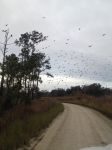 These fish crows use the roost in the winter, usually after the first of the year. Right now the numbers are just starting to build up. Last night while driving down the dirt access road to where we can see the roost, I flushed up a few hundred in some trees along the road. There were also at least a hundred gathered on the dirt road...don't know if they were getting grit for their craws or eating fiddler crabs. As this is at/near their roost, I do not want to hunt them here as they would quickly move on to a different location.