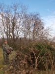 Here is a blind that I hunted last week with a buddy of mine. We went to the location the night before to set up and brush it in. We carried in most of the vegetation due to it being in a cow pasture and there not being much besides some leafless branches and dried thistle. I shot the first two birds on the scene and then allowed my buddy to get the first shot on the rest being that hes a new hunter and I wanted him to get every chance he could to get hooked. He must be cross eyed.... Anyway, we ended with 3... but he's still hooked! In other news, I need much more practice with the new full choked Ithica M37.