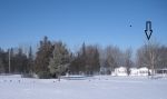 The park sits on the edge of Lake MI. The safety zone is marked by the N-S and E-W lines, as there is a row of semi-mobile homes on the photo’s bottom edge and across the street. I’m sure a few 7.5s bounced off the gazebo’s roof.