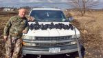 I downed five on Friday a.m. and wounded one, as he zig-zagged his way off to parts unknown with a droopy wing. Clearly missed at least four others. I'm still learning how to properly use a scattergun. More clay practice would help. Yeah, on second thought, dried critter blood is pretty hard to "rinse" off but it blends in with my black truck bed liner a bit better.biggrin
