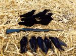 date night with the girlfriend ran later then i wanted it to...and i overslept my 4am wake up alarm...waking up at 7am...almost blew it off and went back to bed but knowing this would be my 2nd to last chance to hunt crows this season...i made my hour and half trek to my hunting area....tried a new spot...which was a cow corn feild that has not been disked under yet....only place to hide was a dry drainage ditch with dead weeds running along it...which actually made it like a pit blind and was super comfy to hunt out of....when i arrived crows were already on the move...i set up quick as i could and fired up the caller....like the previous week our numbers are thinning out...seems mostly like resident birds around...i had no mobs...no small groups...all single happy campers looking to make new friends i suspect....had 7 come in but only put 5 down before i had to quit at noon and head back home...probly could have done 10-15 IFFFFF i had gotten there before sun up....stillll a fun day....going to try to hunt 2 final days next week...then focus on some fishing till thunder chickens open in may...
