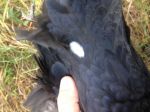 I'm having a hard time this fall locating good numbers of crows. Couple hundred here and there, none of the typical feeding groups of thousands. Shot 20 or so crows this morning and rarely inspect or pick up the dead as they disappear into the cover to be recycled by nature. This one dropped within a few feet of me and I noticed something peculiar as it had a snow white feather on its dorsal surface. Thought I'd post a pic of this "oddity".