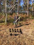 The first time I shot this tower (without brush) a couple years ago, I did shoot some birds below my feet. That was a hoot! This time they were flying higher and we had the brush to contend with, so they were all overhead. The fact that the field had not been mown (due to Hurricane Matthew work) may have been a reason they did not come down.