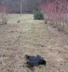 #3, Last Sat. (18 FEB), at a previously un-hunted blueberry field. Set up the night prior (luxury). Funny thing happened when I parked the truck while it was still dark enough (I thought), the locals got up early! They almost attacked the Buffy Bat, with one orbiting around it about ten feet up. He came down hard, once I got in the blind! Got skunked a couple of times, but ended up with three down. See photos 10-14. A lot of work for three crows, but things were getting a bit better, it being a gorgeous morning; the "sun ball" came in mighty handy. I might try this place again during AUG-SEP.