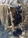 Crows were up moving northward at the crack of dawn as well. Picked up 18 bandits within the first hour and things slowed a bit. Found an old piece of baler twine and during lulls in action wound the KIA's into a long strap as depicted in photo below.