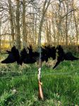 Shot a few crows yesterday evening with some difficulty as cover is still sparse. Only was I met with some success when the sun got low and I was able to use shadows to mask my presence. Below a pic of 6 birds shot from the same stand. These were perhaps the fastest half dozen I have ever collected as I would estimate all killed in less than 60 seconds. They arrived in singles a few seconds apart looking for a fight. Scarcely had enough time to reload my pump shotgun. The second pic is that of the last crow of the evening...floater at 50 yards aloft which came down hard.